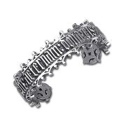 Bratara Alchemy Gothic din alpaca, aliaj inoxidabil cu aspect similar argintului antit Design oficial al brandului englez, foarte populara printre iubitorii genului. 56g Dimensiuni H 38mm, W 262mm D 14mm